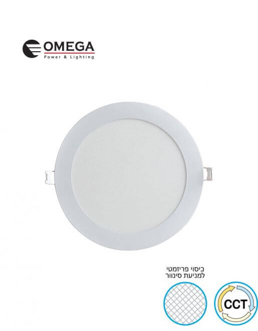 פנל לד שקוע תקרה דגם Classic, כולל כפתור CCT לבחירת גוון האור, כיסוי פריזמטי למניעת סינוור, דרייבר ללא ריצוד – flicker free, זמין במגוון מידות והספקים OMEGA, מידות קדח: ø280mm