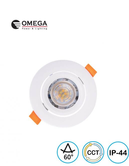 שקוע תקרה דגם לורנזו 7W גוון אור משתנה CCT זווית הארה 60 מעלות. מתאים להארת מגוון חללים, מידות קדח: 75mm, מבית OMEGA